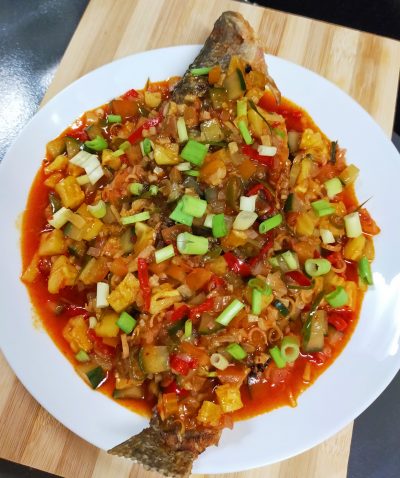 The stall here serves delicious stingray or freshly grilled fish, topped with our homemade spicy sauce – very, very tasty! 🔥